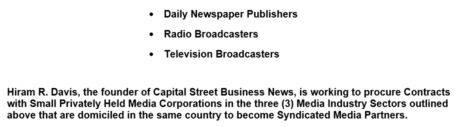 Capital Street Business News – Three (3) Foreign Syndicated Media Partners Bureaus