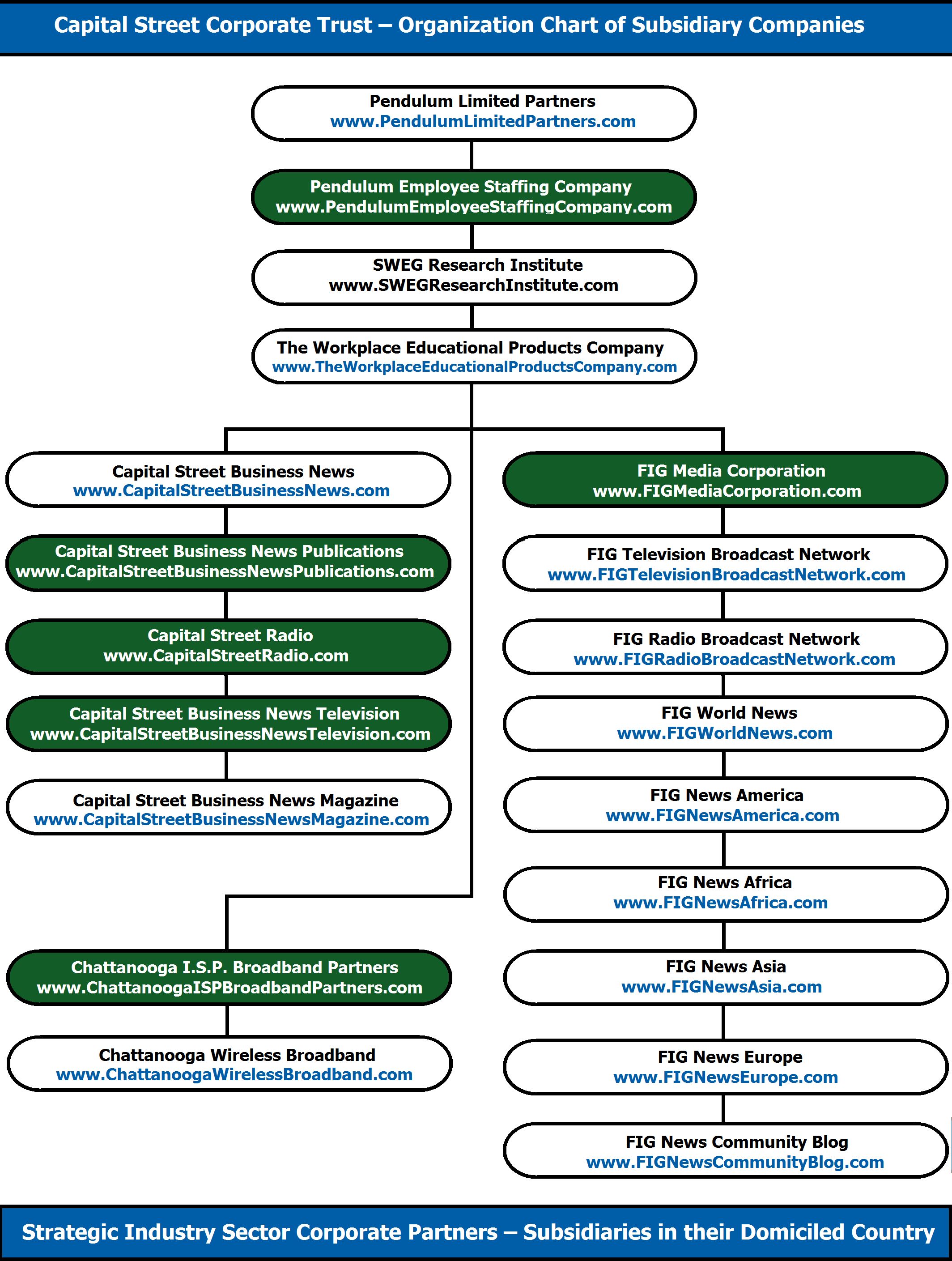 The Green Colored Subsidiary Companies are the First (1st) for Startup Investment